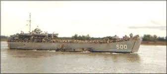 Chiếc LCM sắp ủi bãi, những chiếc nón polo trắng tinh thấp thoáng, mình đang